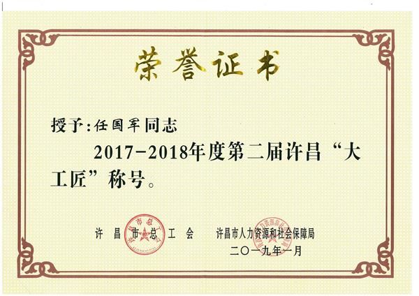 大盛微電任國軍同志榮獲“許昌大工匠”稱號