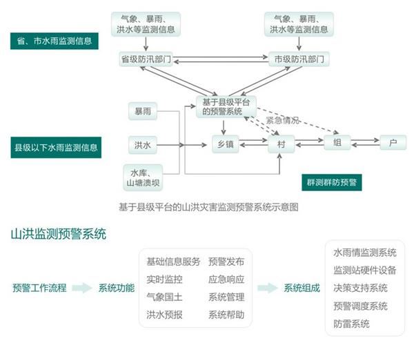 山洪災害預警是針對山洪、泥石流、滑坡等在監測信息采集及預報分析會商決策的基礎上,根據預警信息微機程度及山洪可能危害范圍不同,通過適宜的預警程序和方式,將預警信息及時、準確地傳送到山洪可能危及區域,使接收預警區域人員根據山洪災害防御預案,及時采取預防措施,最大限度的減少人員傷亡。