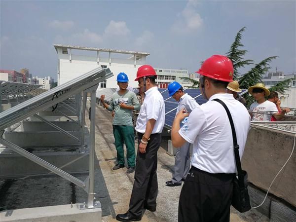 2017年6月29日,頂著炎炎烈日,公司總經理王大鵬、副總經理景保福前往漯河職業技術學院現場視察光伏發電項目進展情況,并看望項目現場員工。